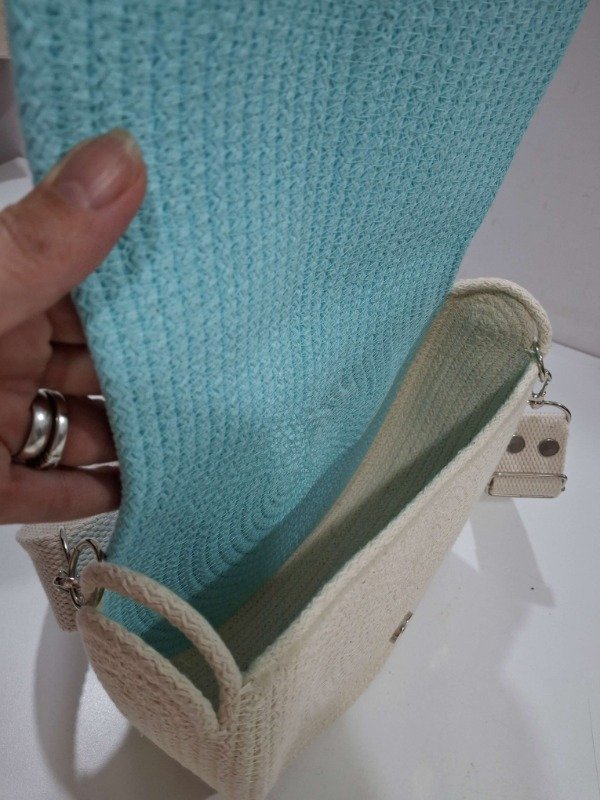 Cartera confeccionada de cordón de algodón, con combinación de color, incluye tira extensible a 1,5mts