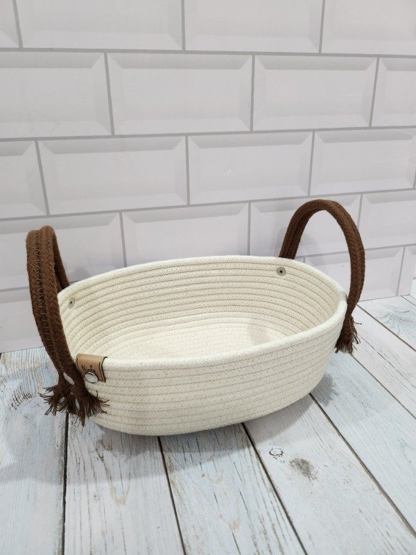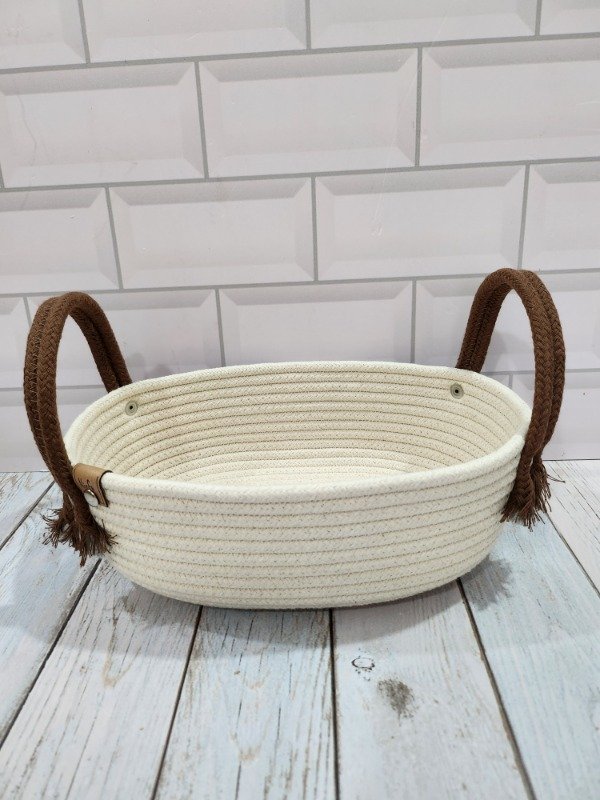 Cesta ovalada con manijas de algodón en color. 27pcm x 18cm x 9cm de altura
