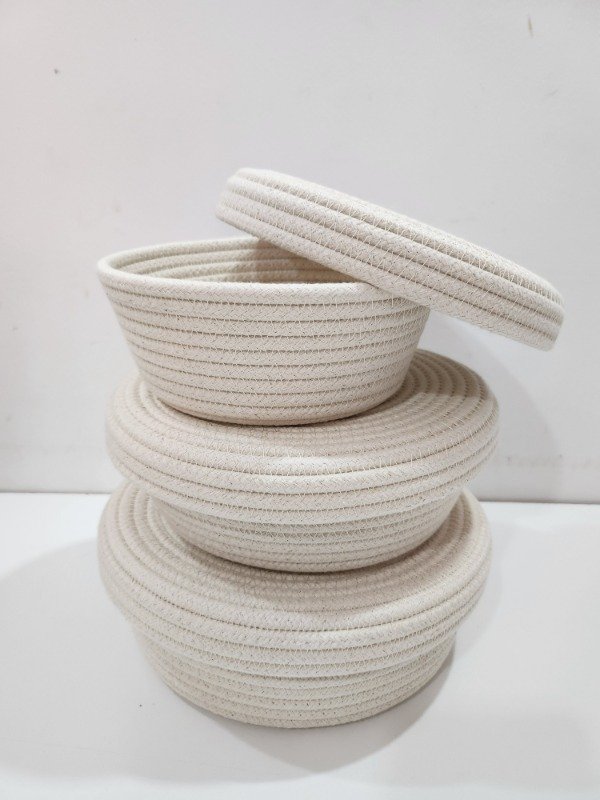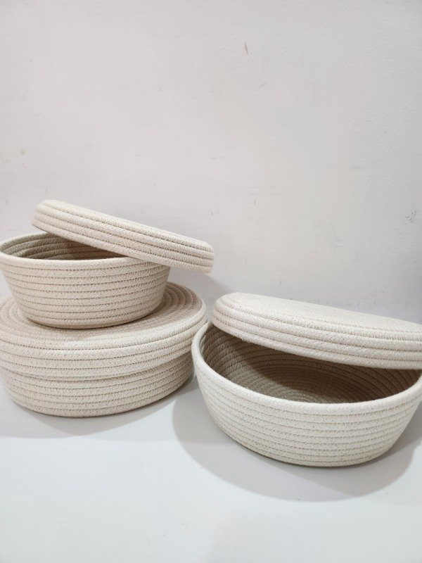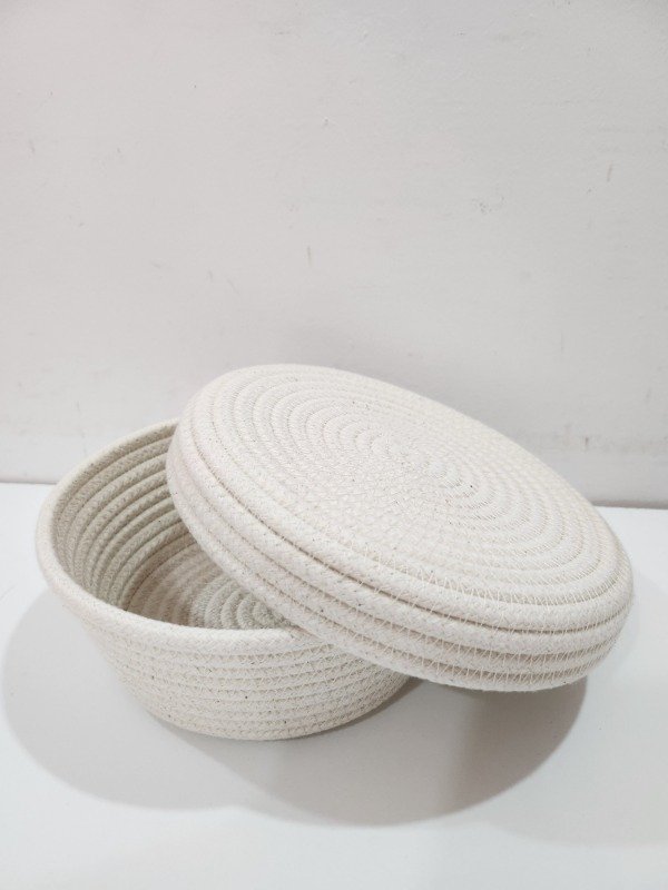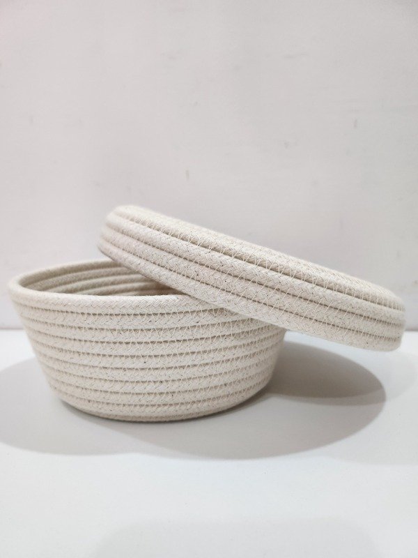 Cesta de cordón de algodón con tapa que podes utilizar como fuente.