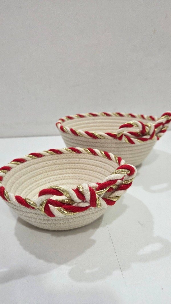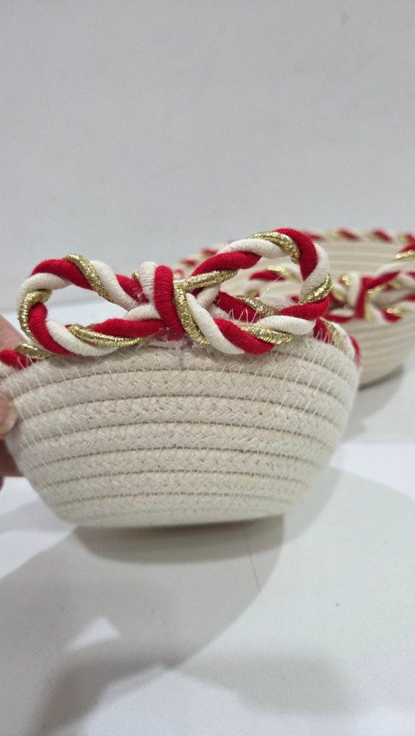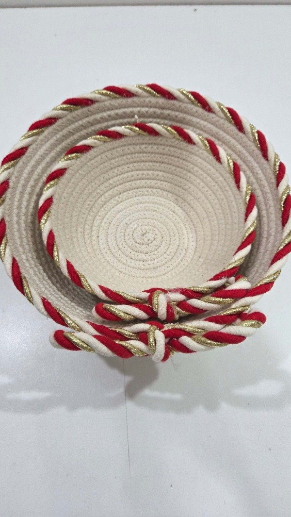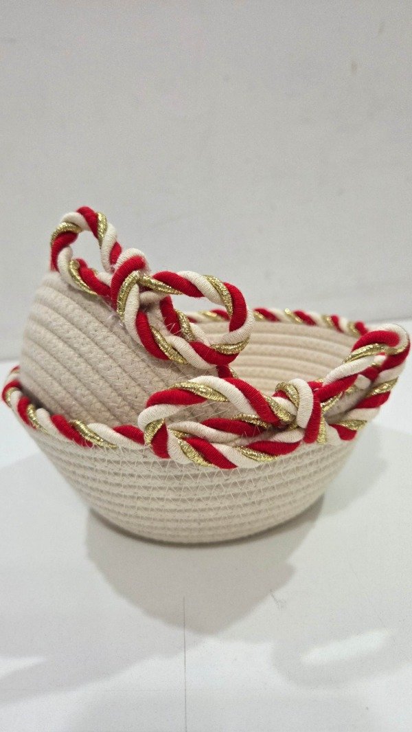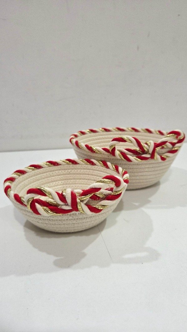 Cestas en cordón de algodón con borde Navidad en rojo crudo y dorado