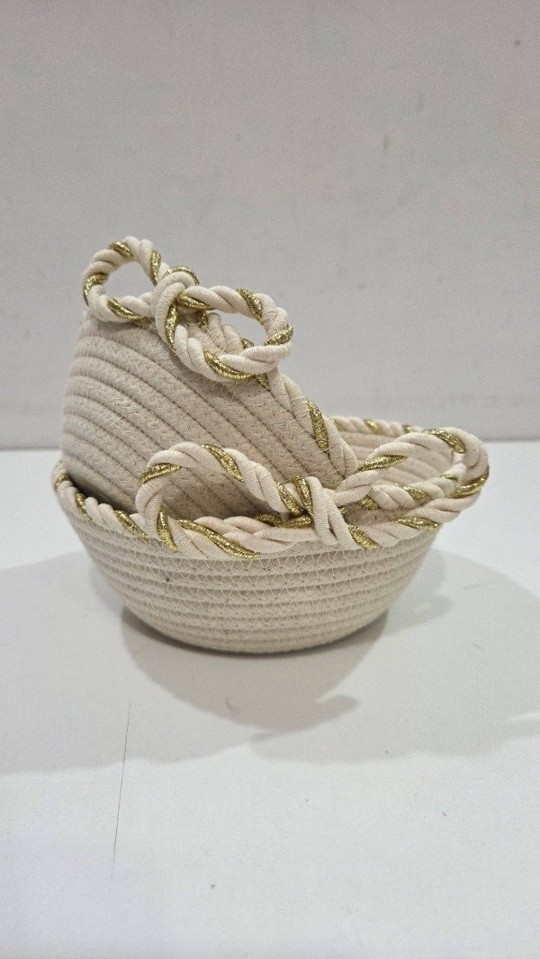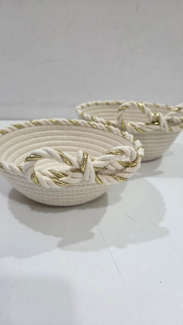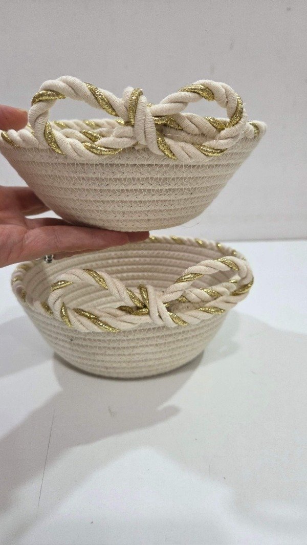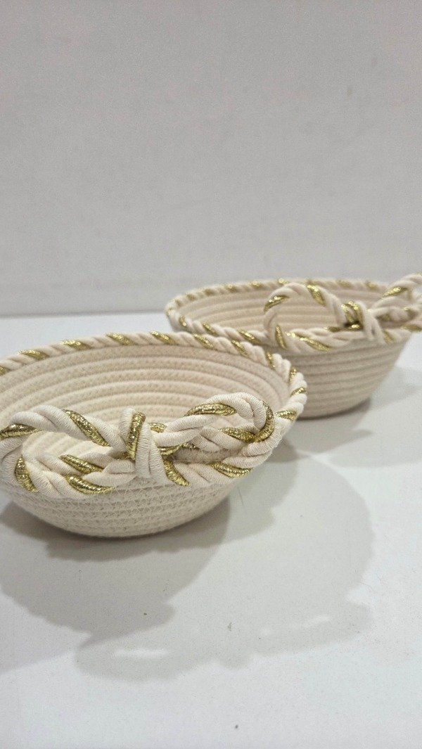 Cestas en cordón de algodón crudo y dorado, dos medidas