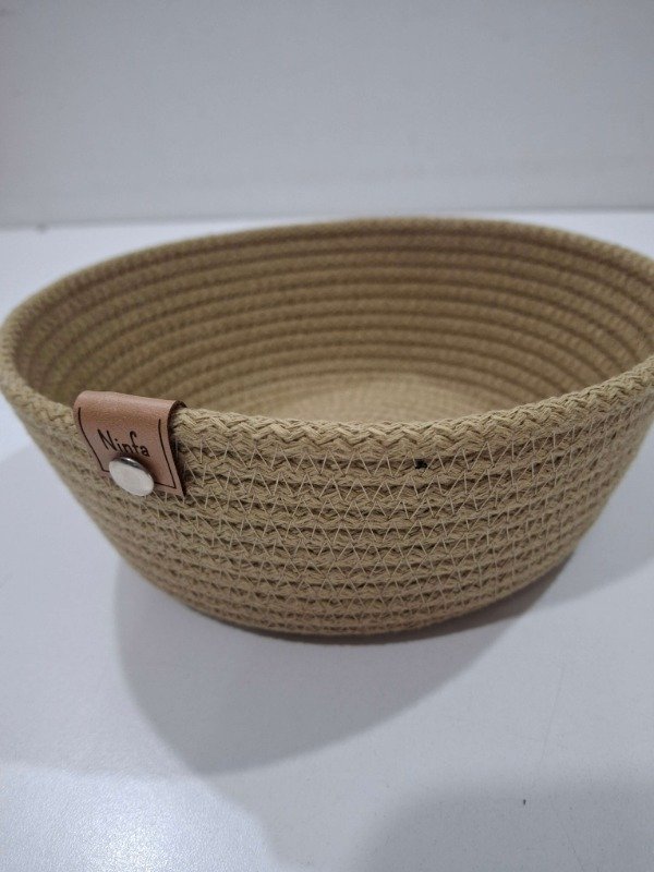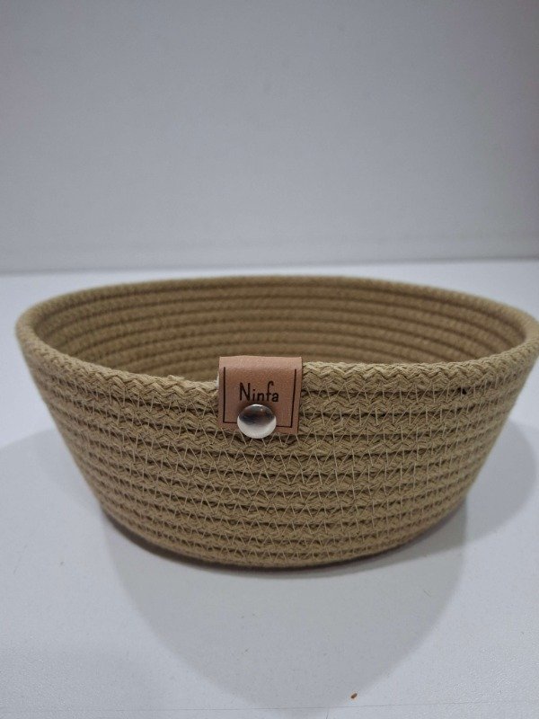 Cesta de cordón de algodón color simil yute 19x7cm