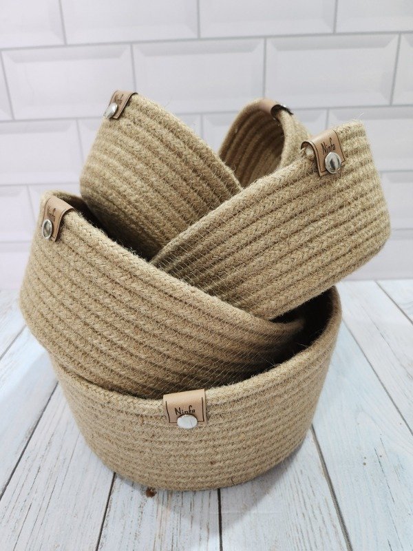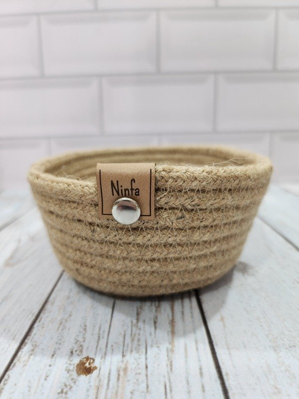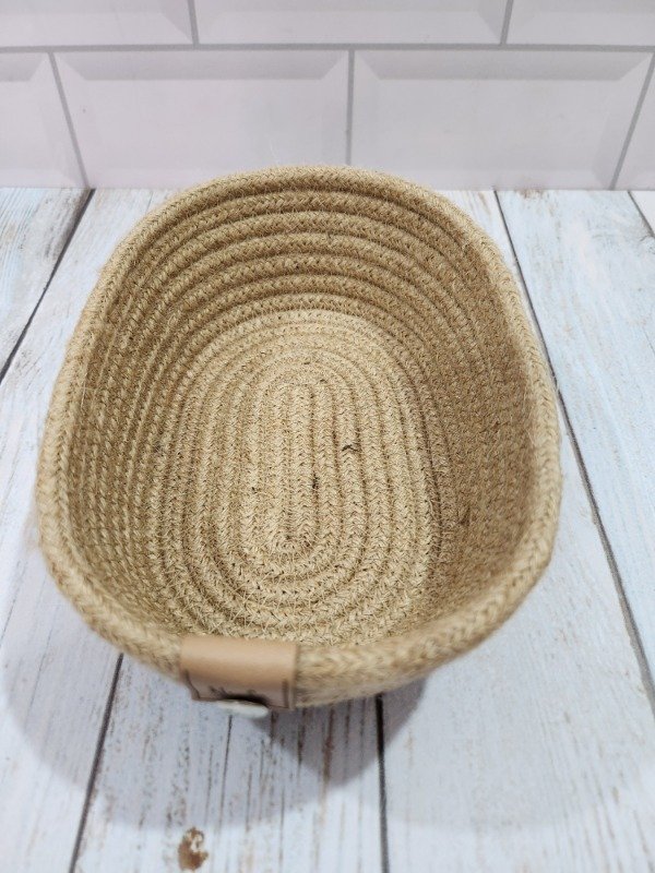 CESTA OVALADA DE CORDON DE YUTE NATURAL, CALIDAD PREMIUN. 19 X 13 X6CM