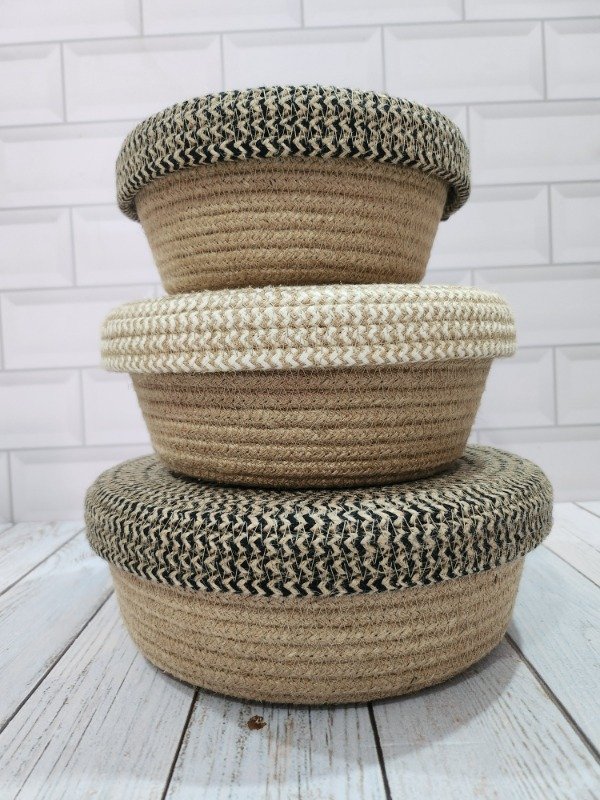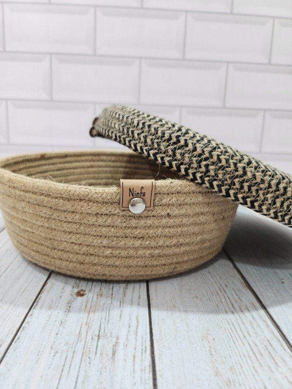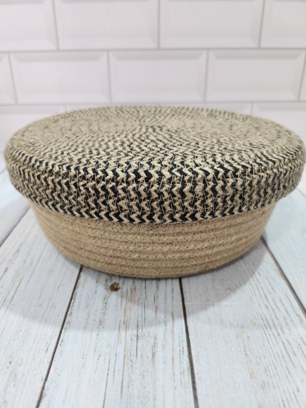 Cesta de cordón de YUTE NATURAL con tapa que podes utilizar como fuente
