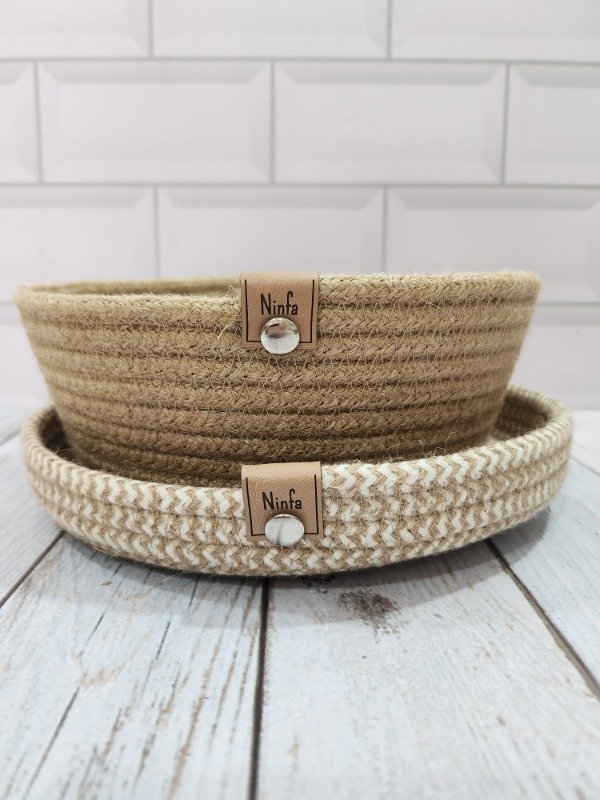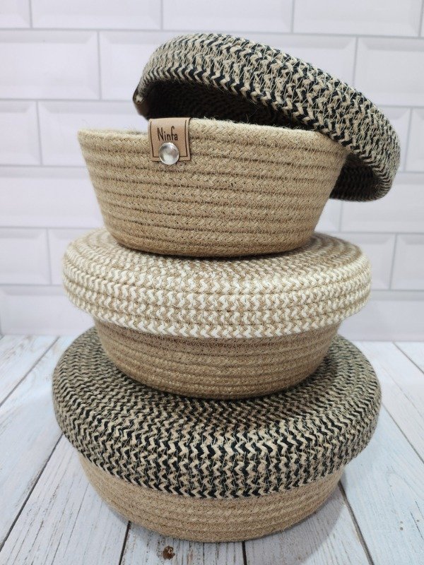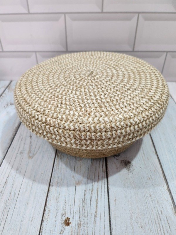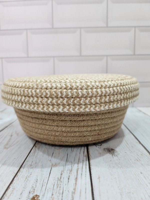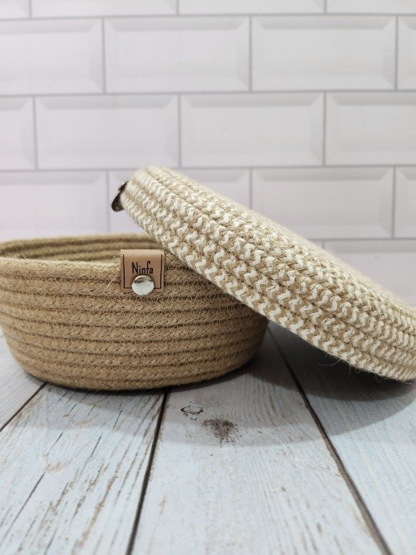 Cesta de cordón de YUTE NATURAL con tapa que podes utilizar como fuente, 21x7cm