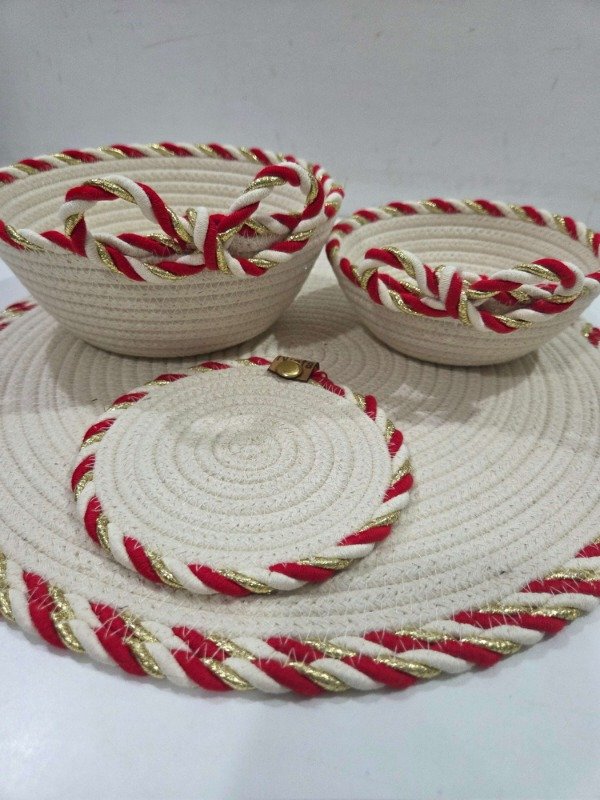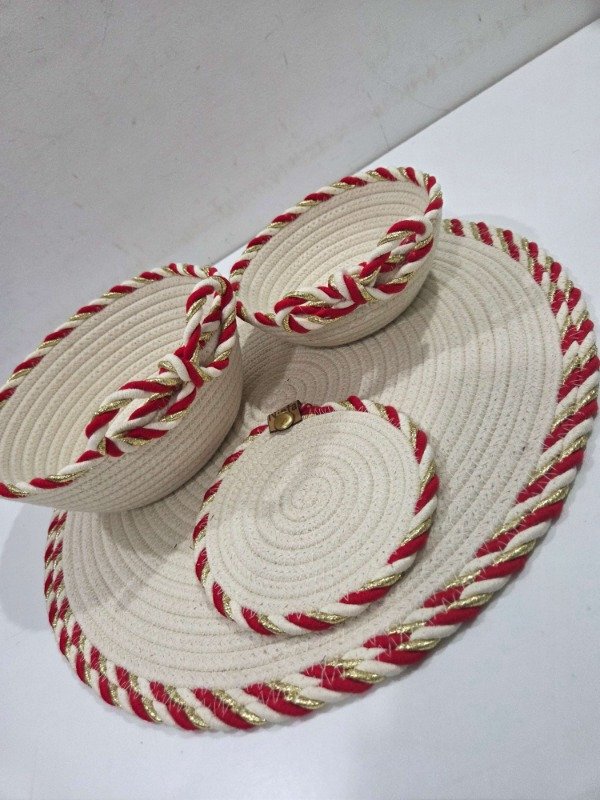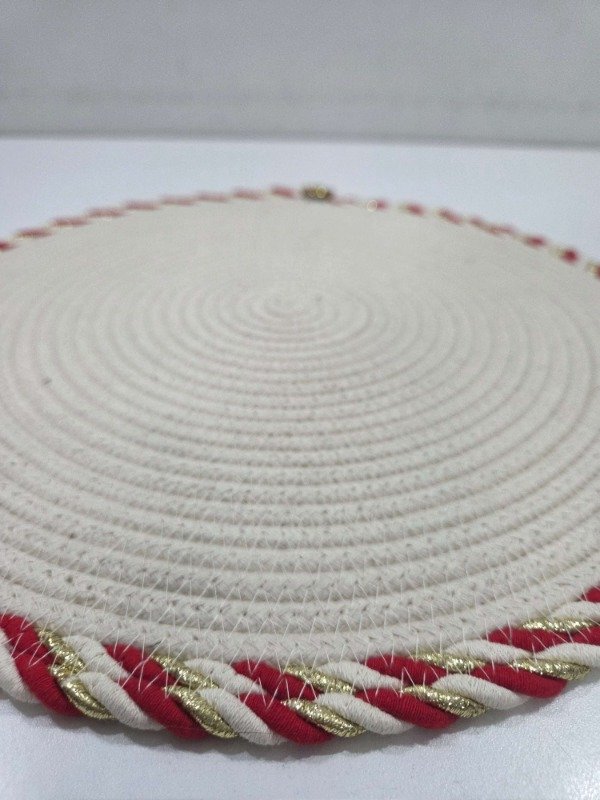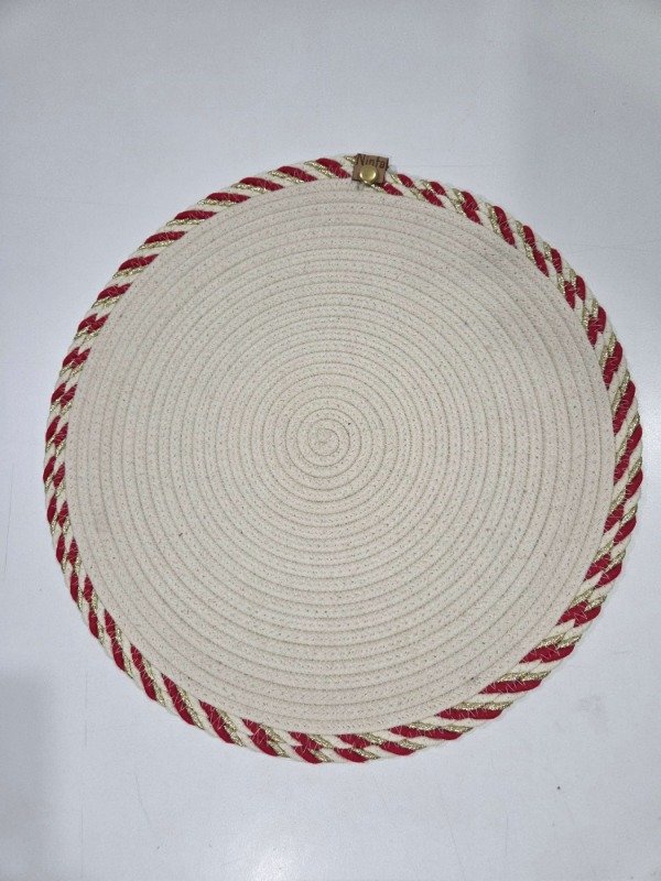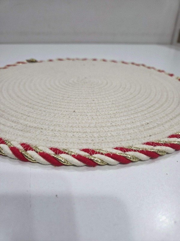Individual plato de sitió DELUX línea navideña, de algodón trenzado Calidad premium, con bordes decorativos en distintos colores a elección. 36cm