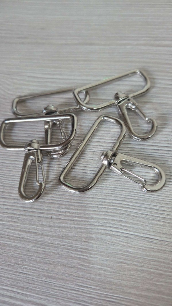 Mosqueton anzuelo corto, pase de cinta 40mm, color plateado, níquel. Precio x 4u