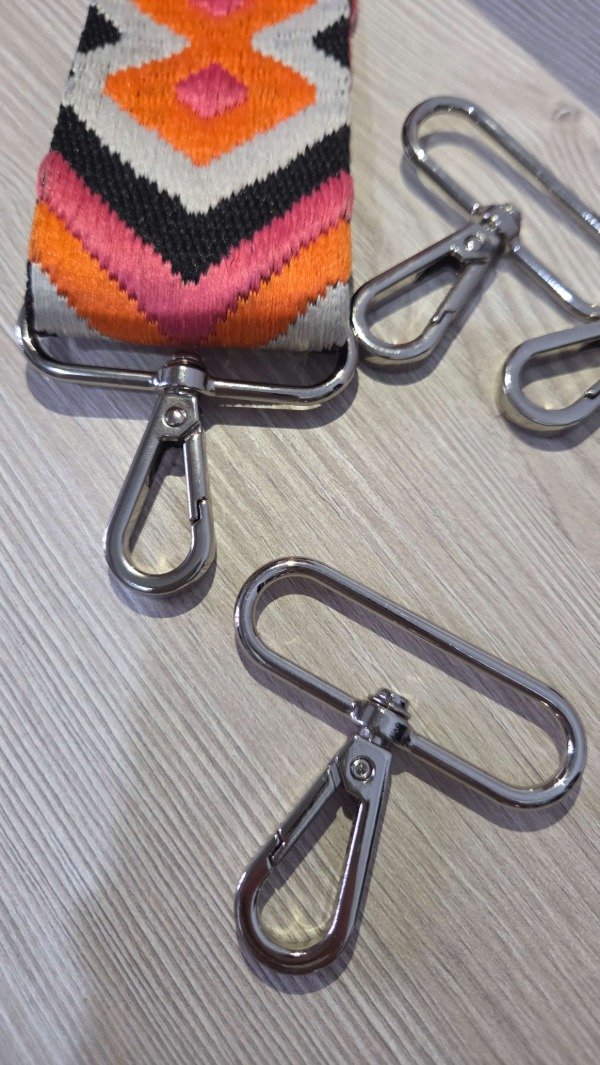 Mosqueton chato pase de cinta 50mm, plateado. Precio x 4u