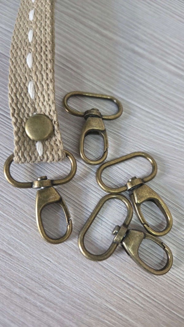 Mosqueton gordo Bronce pase de cinta 25mm, color Bronce. Precio x 4u