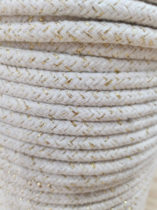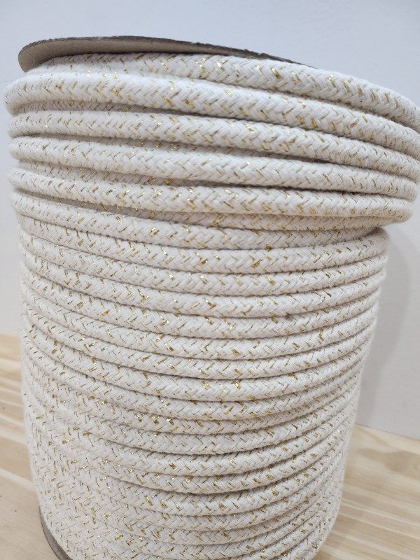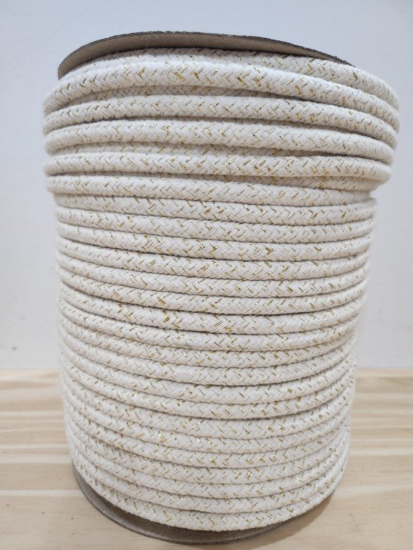 Cordón algodón trenzado CRUDO Y LUREX DORADO 7mm