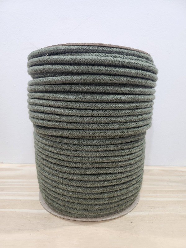 Cordón de algodón trenzado 7mm VERDE MILITAR. 100MTS