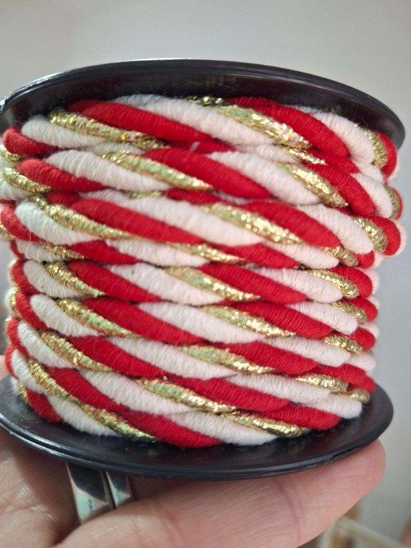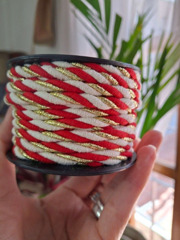Cordon de algodón RETORCIDO de 4mm rojo , dorado y crudo x 10mts