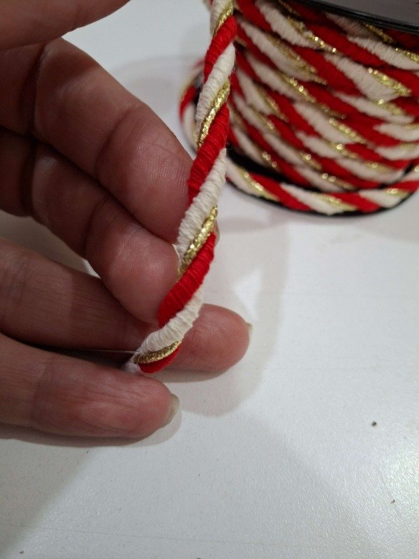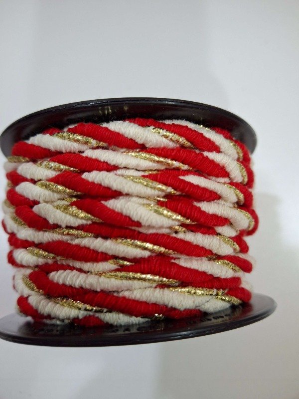 Cordon de algodón RETORCIDO 4mm CRUDO/DORADO/ROJO 10Mts