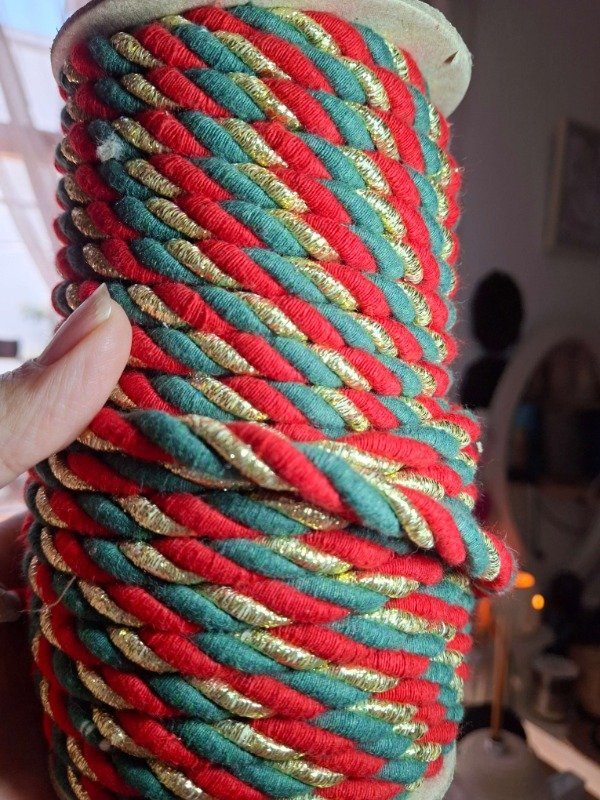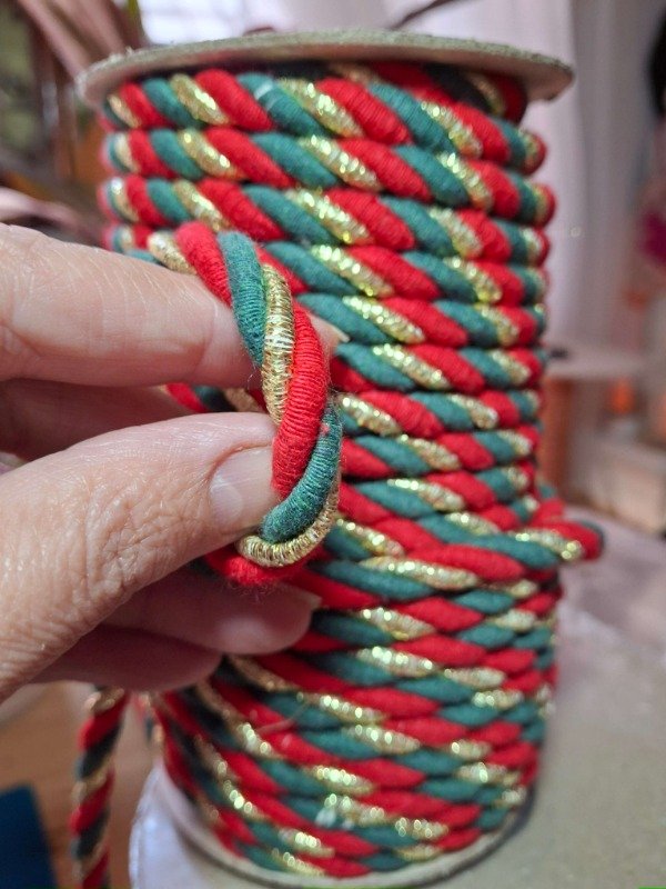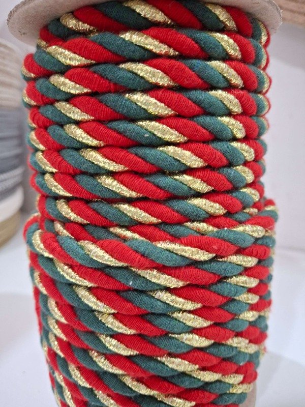 Cordon de Algodón retorcido verde y lurex dorado y rojo x25mts