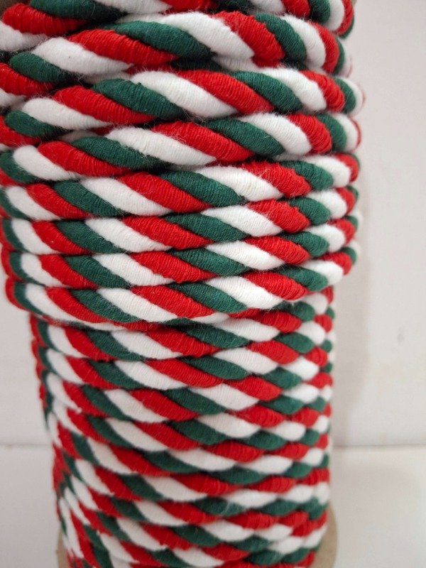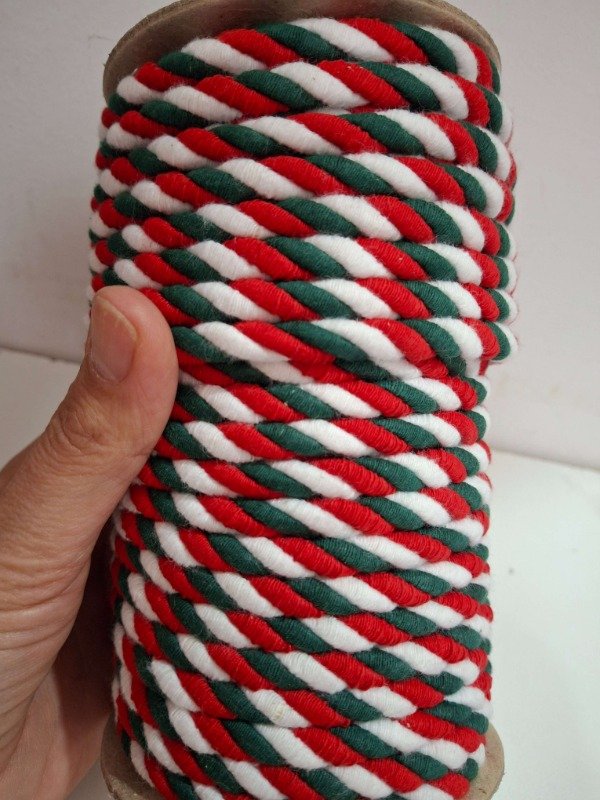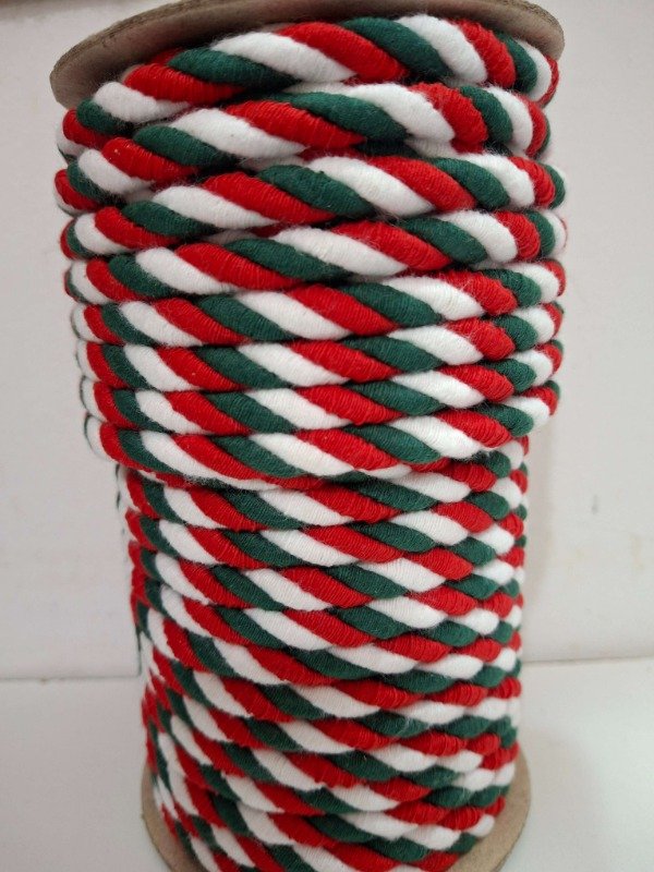 Cordon de Algodón retorcido blanco, rojo y verde x25mts