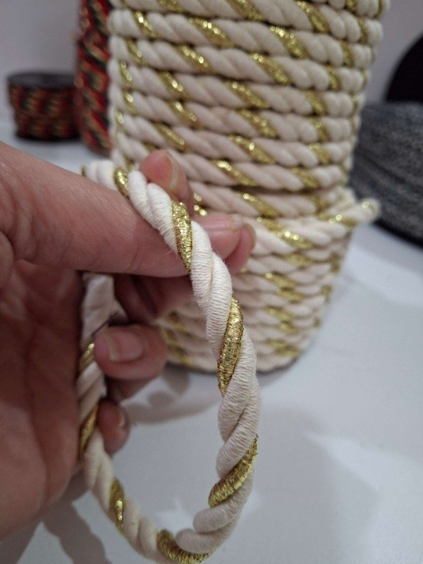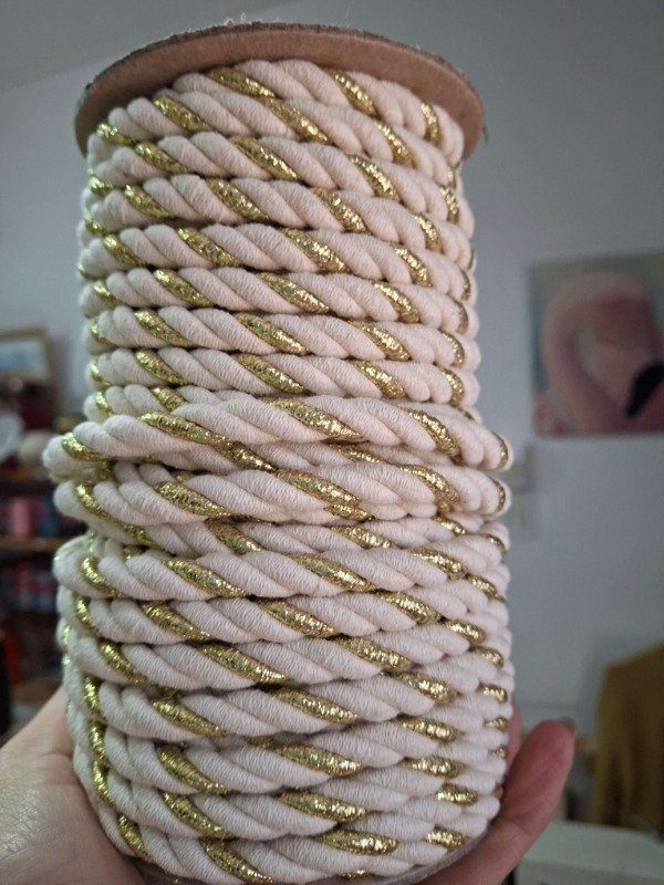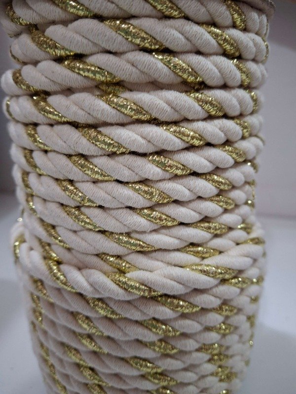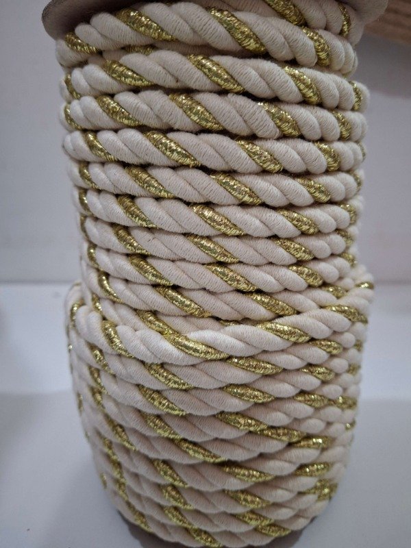 Cordon de Algodón retorcido crudo y lurez dorado x25mts